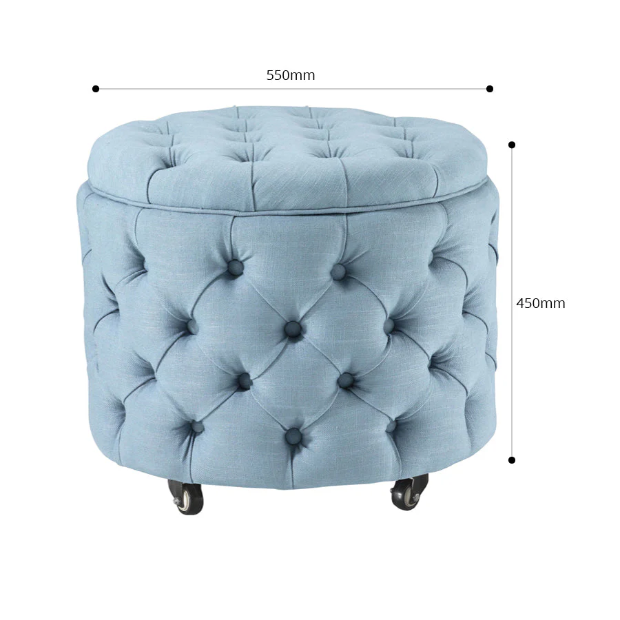 The Emma Storage Ottoman Small is perfect for a living room centerpiece and has inner storage space ideal for blankets, seasonal clothing, and accessories. A truly stunning round ottoman, finished in a heavy duty linen blend fabric.