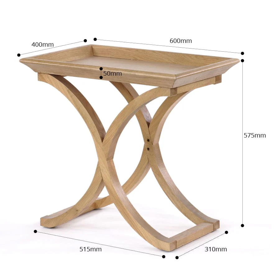 A cross between simplicity and sophistication, our Evie Side table with Cross Legs is made from oak wood. Gracefully utilizing a classic butler tray this side table would be ideal for city or coastal decors. The curved legs and joint structure will make a statement from other furniture pieces whilst blending to bring harmony to any décor.