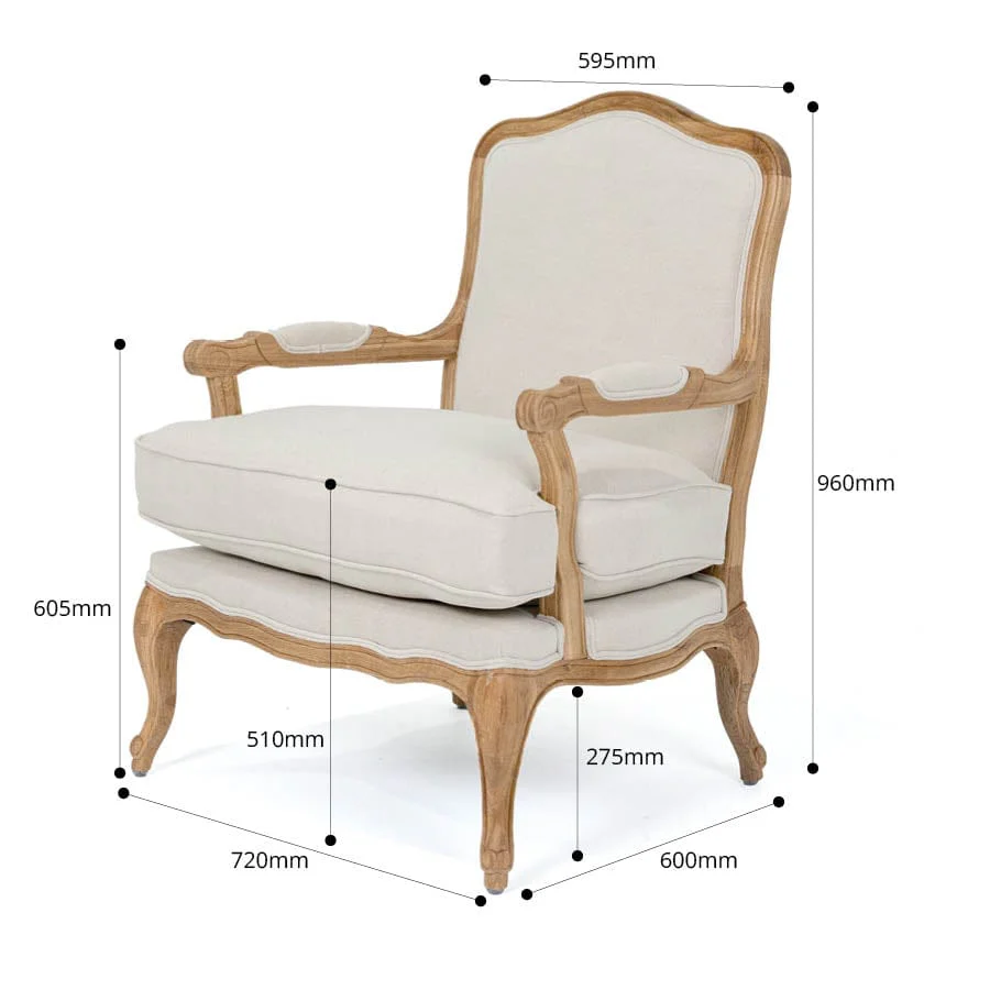 The French Provincial Occasional Chair is a classic French design, handcrafted and upholstered for elegance and comfort. Embracing a lovely juxtaposition between ornate and decorative heritage and the pared back style of country residence. Featuring a solid carved oak frame and legs, this piece will stand the test of time and feature beautifully in any chosen space.