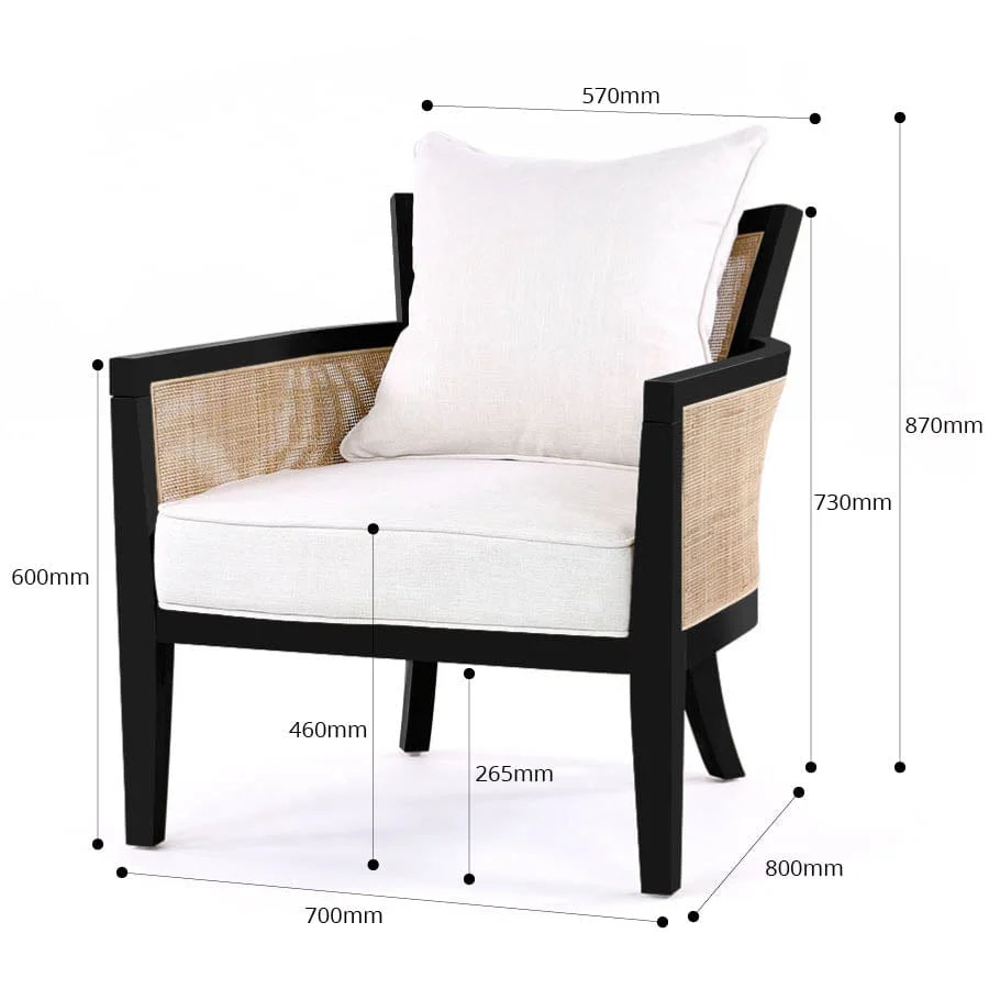 Our Hampton Club Chair beautifully designed and executed in rattan and hardwood, with removable cushions and covers. Upholstered in high quality heavy duty linen blend fabric in Linen White. This traditionally designed piece has been brought back to life with this whimsical statement piece perfect for the home or office.