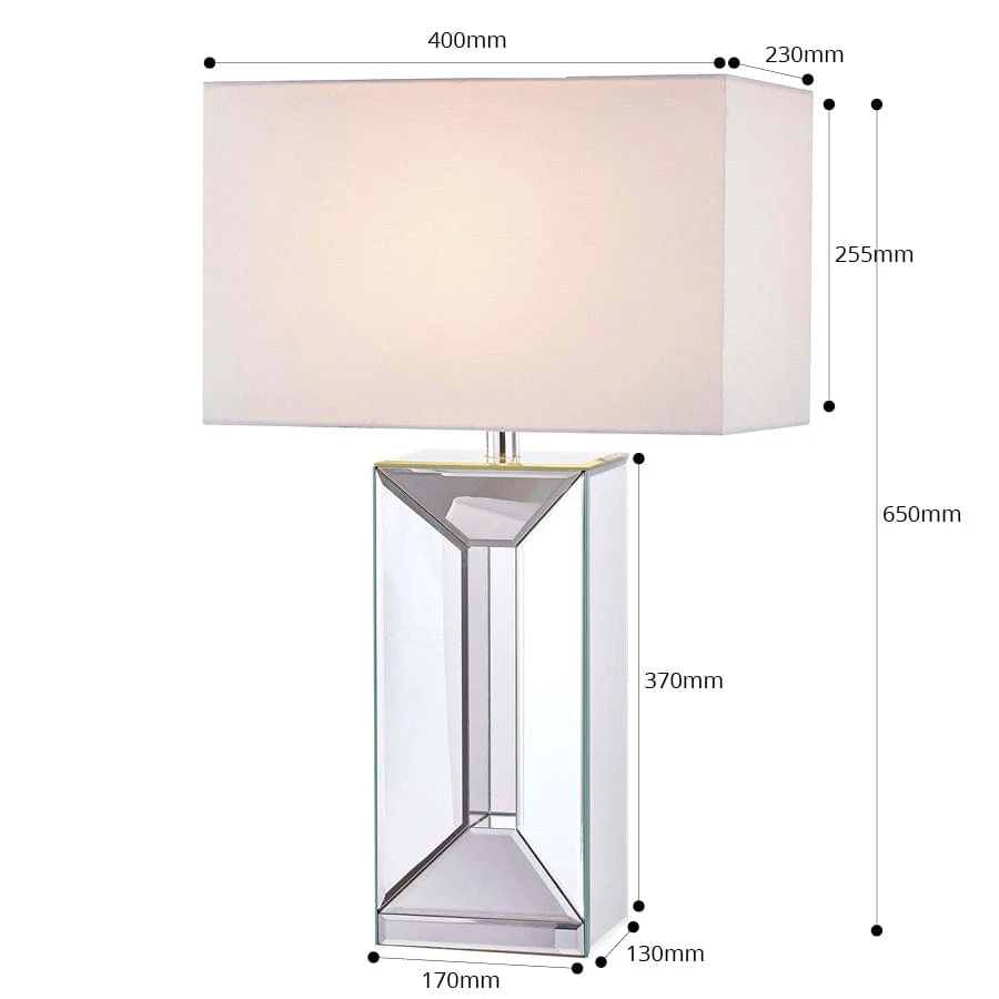 Simple and elegant, the Lydia Mirror Block Table Lamp will add a touch of understated glamour to any room. The mirrored base eloquently reflects your room's décor, making it match in with any colour scheme.