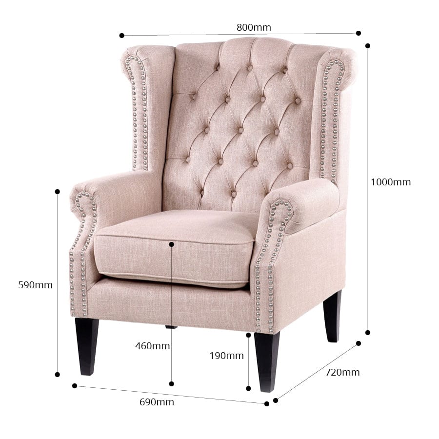 Indulge in ultimate luxury and sophistication with the Royale Wingback Arm Chair. Its timeless wingback design is elegant and charming, while the sturdy solid hardwood construction makes it a durable statement piece. The high quality heavy duty linen blend fabric and intricate stud work add a touch of opulence to this exquisite armchair.