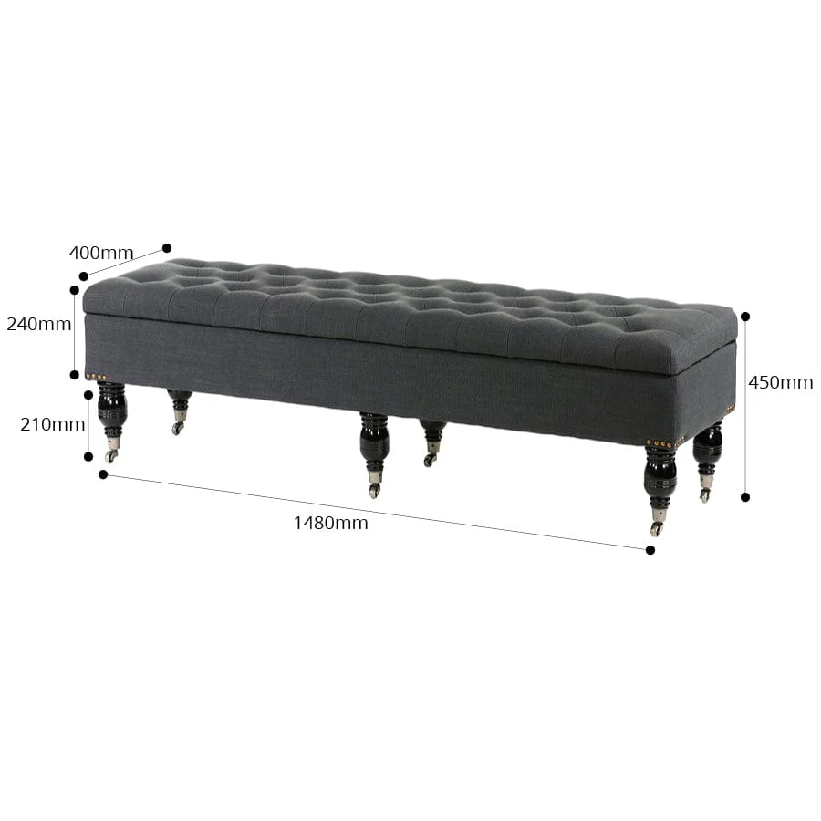 Sophie Storage Dressing Bench 148cm Charcoal—