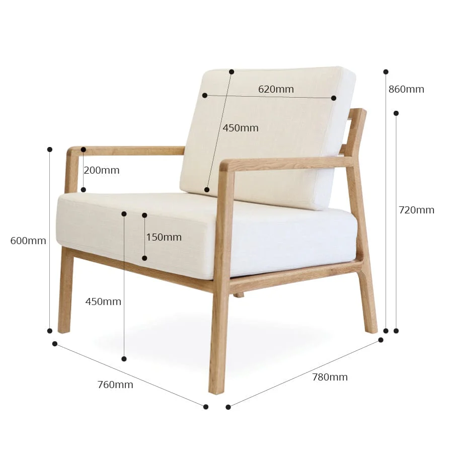 This solid oak Stanford Arm Chair is the perfect chair to laze the afternoons away. Handmade from the finest materials and upholstered in a heavy duty linen blend fabric it's the essence of mid-century Danish design. The perfect statement piece for the den or sitting room.