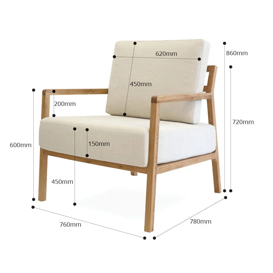 This solid oak Stanford Arm Chair is the perfect chair to laze the afternoons away. Handmade from the finest materials and upholstered in a heavy duty linen blend fabric it's the essence of mid-century Danish design. The perfect statement piece for the den or sitting room.