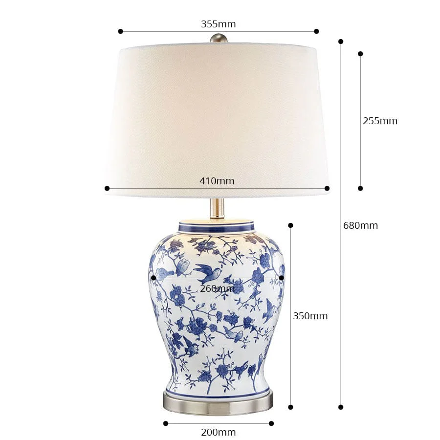 Oriental inspired and featuring a traditional and intricate blue embossed design, the Tessa Table Lamp is perfect to add something a little different into your home. It is complimented by an off white linen hardback shade and chrome base.